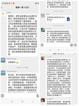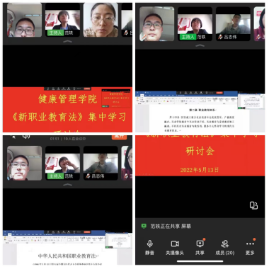 米乐mile体育官网要求全体老师们深入自学,并写了200字以上学习体会,发到教师群,相互交流学习。5月13日下午4点半,利用钉钉群线上会议,深入学习研讨了职业教育法。米乐mile体育官网书记范轶带领大家一起学习了职业教育法,并进行了解读。重点解读了“国家采取措施,加快培养托育、护理、康养、家政等方面技术技能人才。”借着国家政策东风,我们的家政、智慧养老等专业尽快成长起来。昨天,老师们看了长沙民政职业技术学院直播,主题是技能,让生活更美好。重点解读了健康养老服务技能。