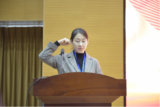 参赛选手代表陈文秀老师、崔著秀同学以及裁判员代表赵越分别代表教师组参赛选手、学生组参赛选手、全体裁判员宣誓。
