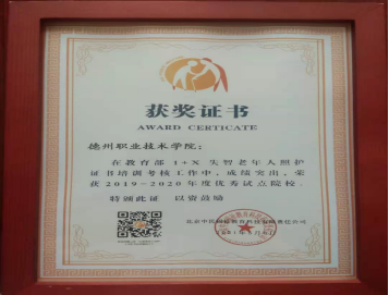 5月8日,教育部1+X失智老年人照护职业证书试点院校考核工作暨2020年度优秀试点院校表彰会在西安成功召开,米乐mile体育官网因在2020年度培训考核工作中成绩突出,获得“教育部1+X失智老年人照护证书考核工作优秀试点院校”荣誉称号。