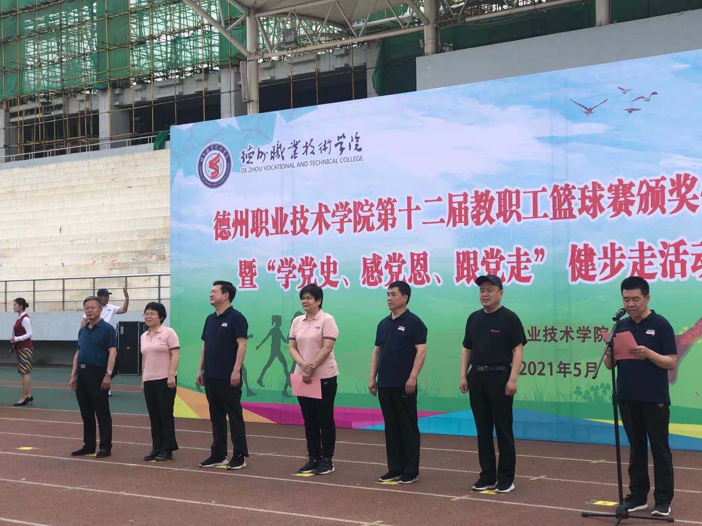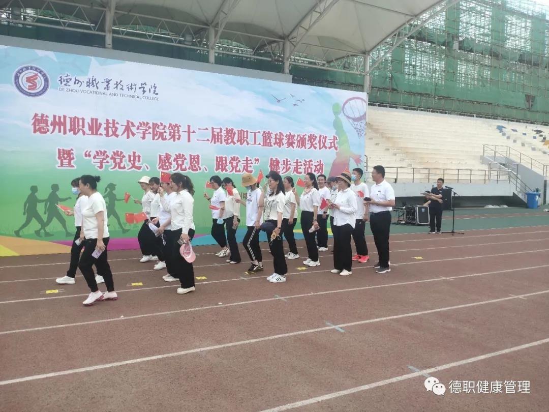 为深刻铭记中国共产党百年奋斗的光辉历程,丰富党史学习教育主题实践活动,5月27日,米乐mile体育官网在田径场举行“学党史、感恩党、跟党走”主题健步走活动。由校党委书记樊兆杰,校党委委员、工会主席周爱红,校党委委员、副院长殷淑英,校党委委员、纪委书记聂长义,校党委委员、副院长多建民,校党委委员、办公室主任郭士武等领导及学校各处室负责人、各系书记、主任、科长等领导教师出席本次活动。