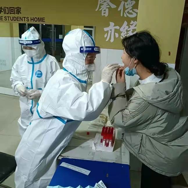 米乐mile体育官网有护理资质的6名大学生主动请缨,穿上“隔离服”化身“大白”,与医务人员一起,战斗在核酸检测第一线。他们每天中午12点到达现场,整理抽检用具,和“红袖章”一起提醒每一位前来做核酸检测的师生佩戴好口罩,出示预约码,保持一米间隔,并提前扫码,有序完成采样,保障了核酸采样工作有序进行。