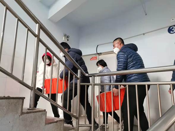 米乐mile体育官网留校党员更是奔波在抗击疫情一线,为学生们送饭,两位老师抬满满一大箱“爱心餐”爬楼,送到学生宿舍门口,同心战疫,尽显责任担当。