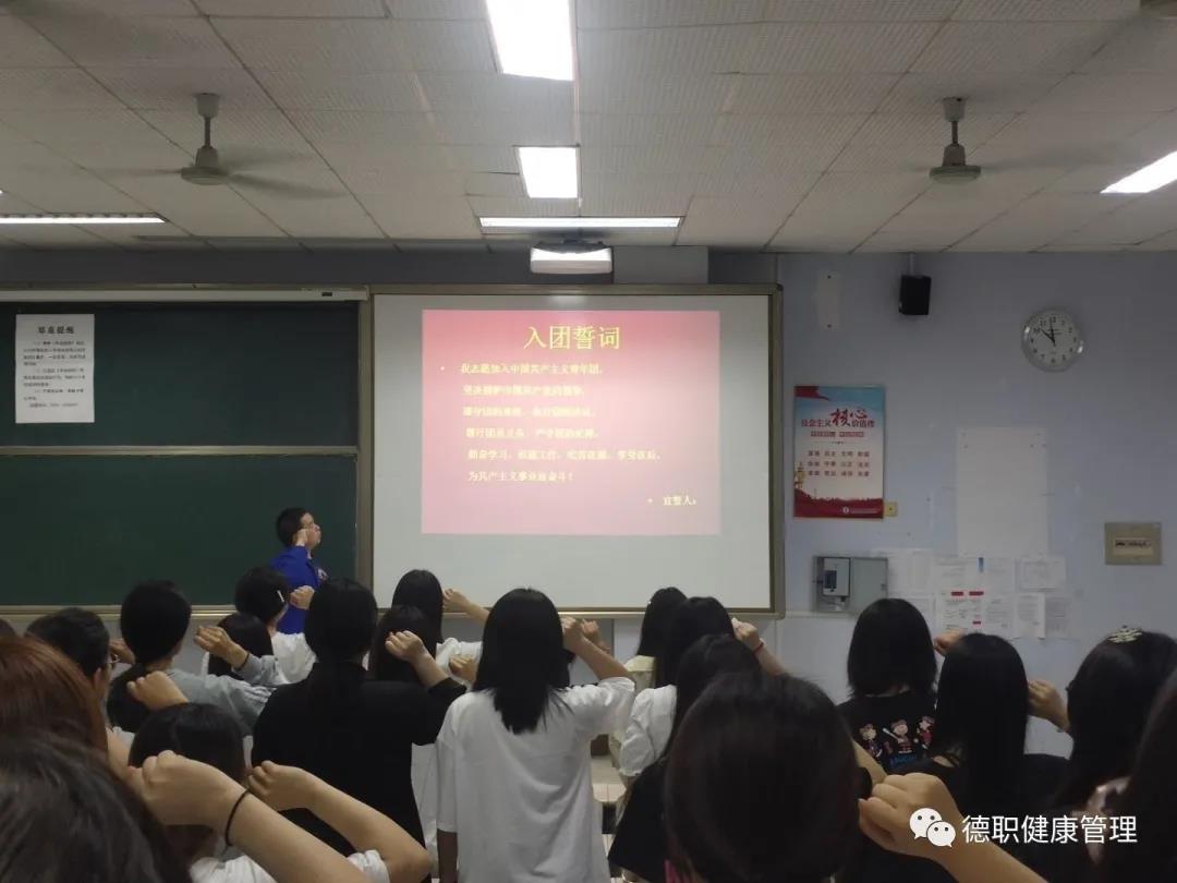 首先由孙小龙老师向团员们介绍中国共青团组织、团员的基本知识,并对团员们进行提问。随后宣誓仪式开始,孙小龙老师带领团员们庄严宣誓,青春誓言,高昂雄浑,表达了同学们对共青团组织的无限向往和为团组织增光添彩的豪迈激情。