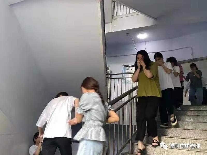 在演练过程中,随着信号的发出。同学们根据演练方案中规定的路线,弯着腰,捂住口鼻,沿着指定楼梯口快速疏散,有序地撤离到宿舍的安全地带,同学们在最短的时间内到达的指定位置,整个疏散演练过程井然有序。
