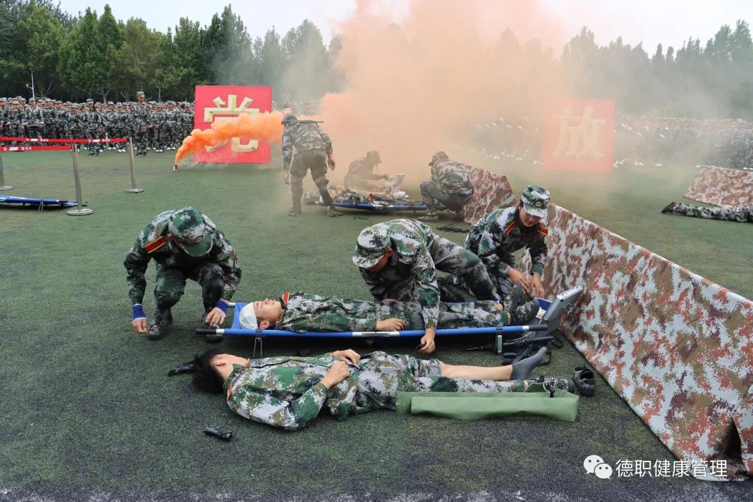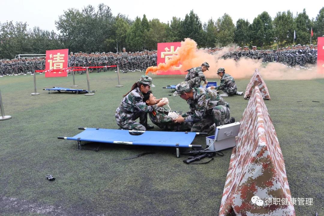 特别值得一提的是,今年的军训演练增加了模拟实地战场医疗救护,模拟战场的狼烟滚滚交织出一场沙场秋点兵的铿锵画卷。