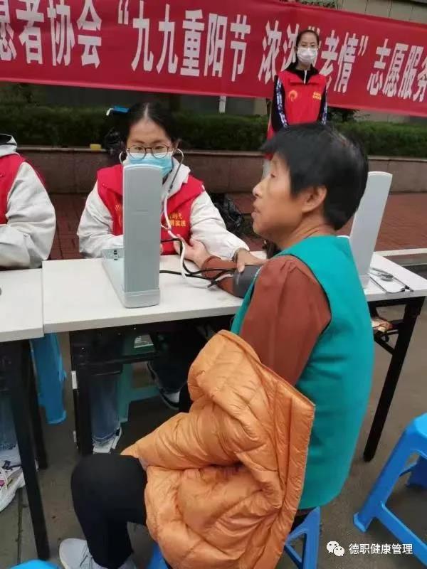 米乐mile体育官网志愿者发挥专业优势,为社区老人测量血压,发放健康手册,讲解健康知识。