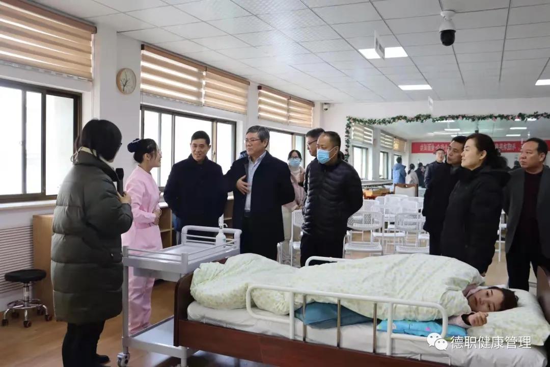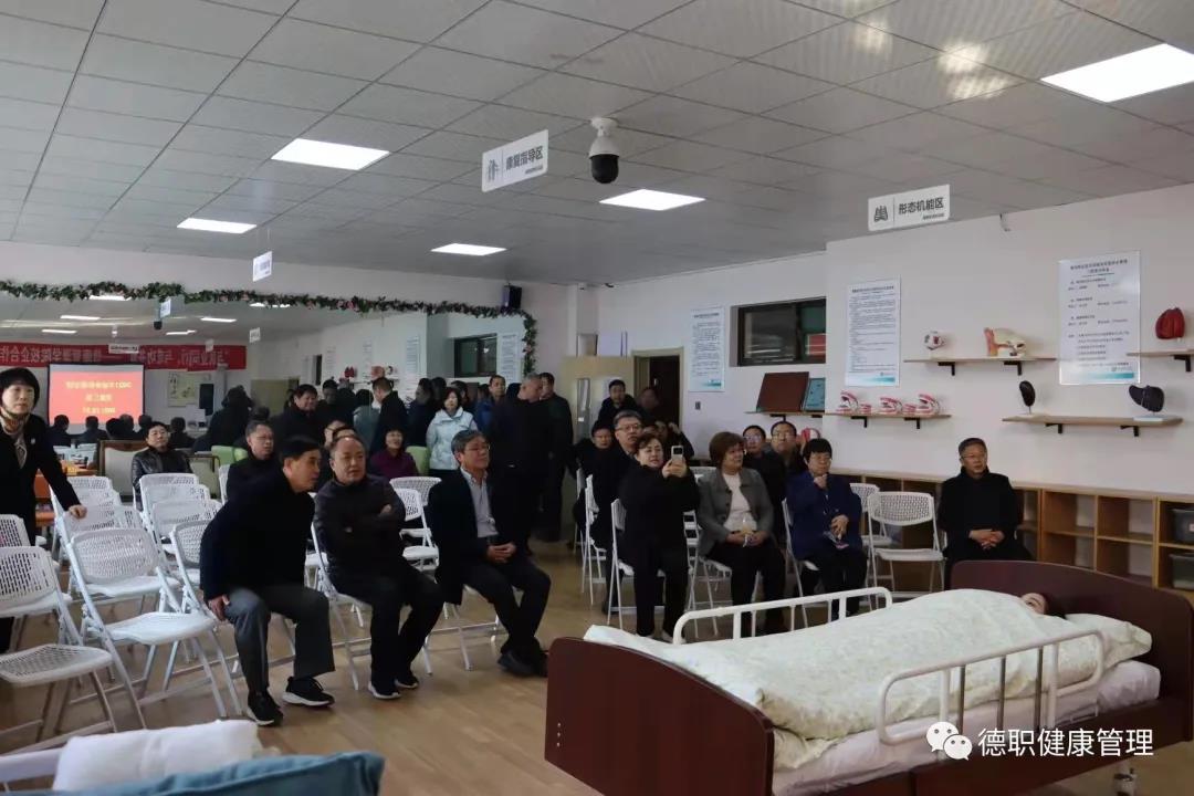 范轶同志首先就米乐mile体育官网筹建两年来建设的基本情况情况进行简单介绍。她介绍了为构建以“尊”“敬”为核心的“尊老、敬业、专技、守诚”的专业育人体系打造的迎宾墙和誓言墙。随后范轶重点介绍了刚刚建成的校内“智慧康养理训一体室”和校外产教融合实训室。“智慧康养理训一体室”建筑面积140平方米,可满足48名学生同时上课,实现项目化教学的需求。目前,前期基础建设项目已完成,将承担智慧养老、健康管理和健康大数据专业《智慧为老平台运行管理》、《人体结构与功能》、《流行病学》等课程的理论教学任务。待整个项目完成,还可以承担学生开展呼吸系统、消化系统、运动系统等人体结构认知的实操训练任务。