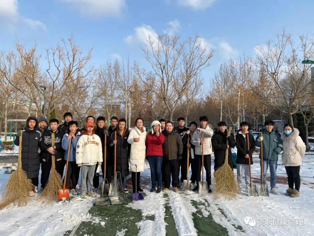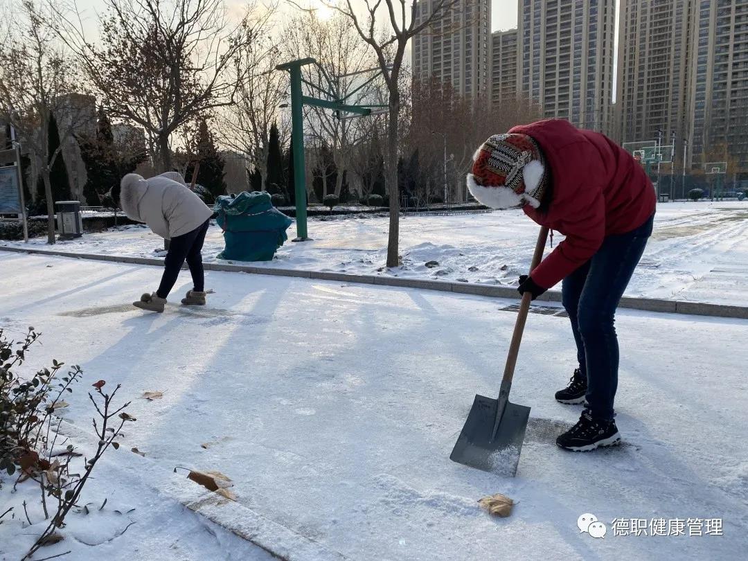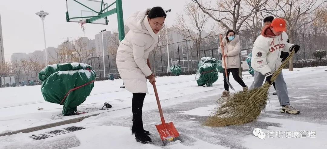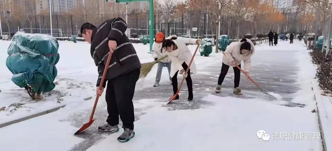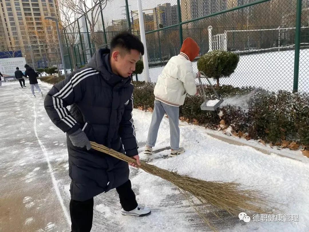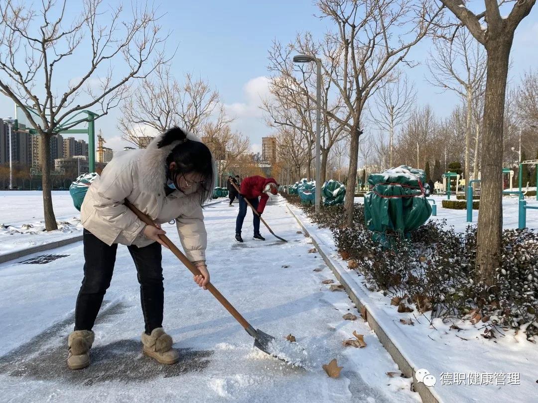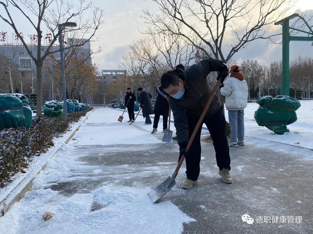 12月24日天降瑞雪,覆盖校园。米乐mile体育官网党员干部教师、学生志愿者大清早准时到工作岗位。我们的清扫区域是综合运动体育场周边道路,是学生们上课必经之路,开辟出洁净通道,保障学生们出行安全。
