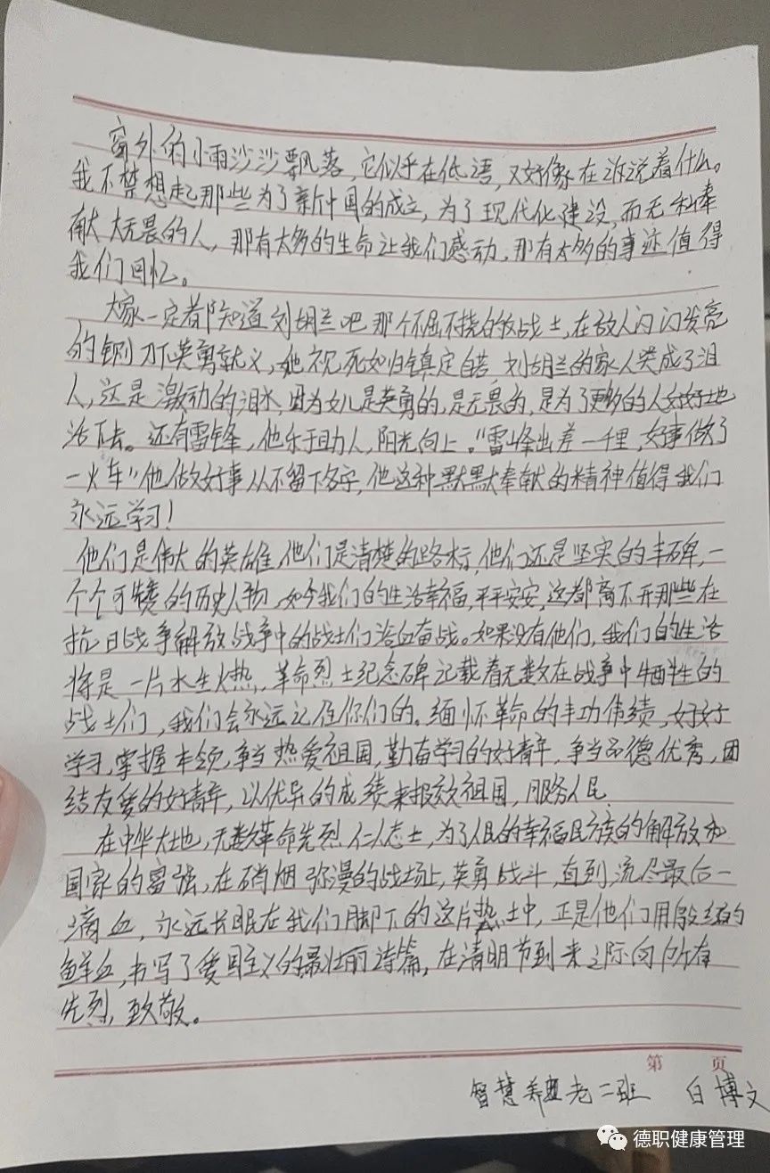 学生科副科长路遥讲到面对这场突如其来的疫情防控阻击战,最需要凝心聚力,合力攻关。携起手来,同舟共济,合力打赢这场疫情防控阻击战。网上祭奠以更文明、更安全的祭奠方式来表达对英烈的尊崇缅怀之情。