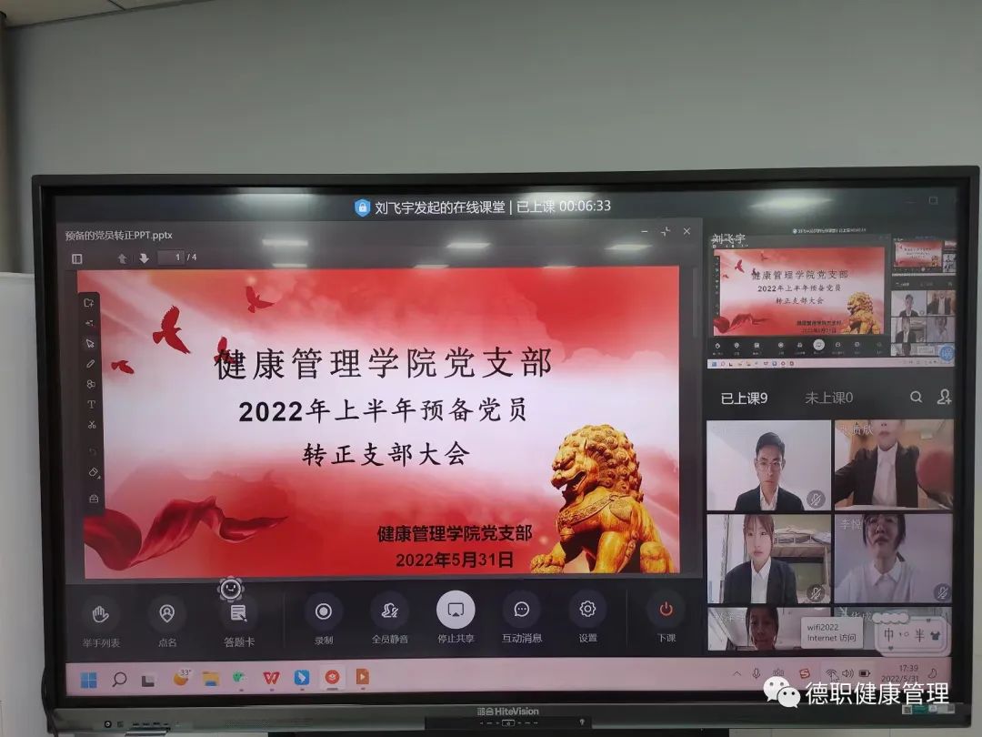 本次会议采取“线上”加“线下”的方式进行。首先党支部书记范轶宣读转正大会流程,并代表党支部向大会介绍拟转为正式党员的张佳一等9名同志的基本情况。各预备党员依次宣读转正申请书,向党组织汇报了入党以来的思想、工作和学习等情况。接下来,与会党员发表了意见,并进行了无记名投票。投票结束后,党支部书记范轶宣读了同意9名预备党员转正的表决结果和支部决议。