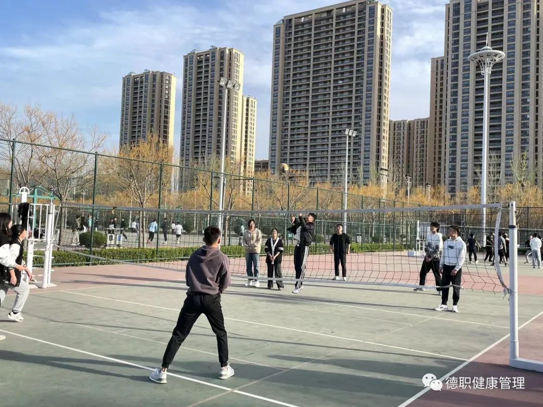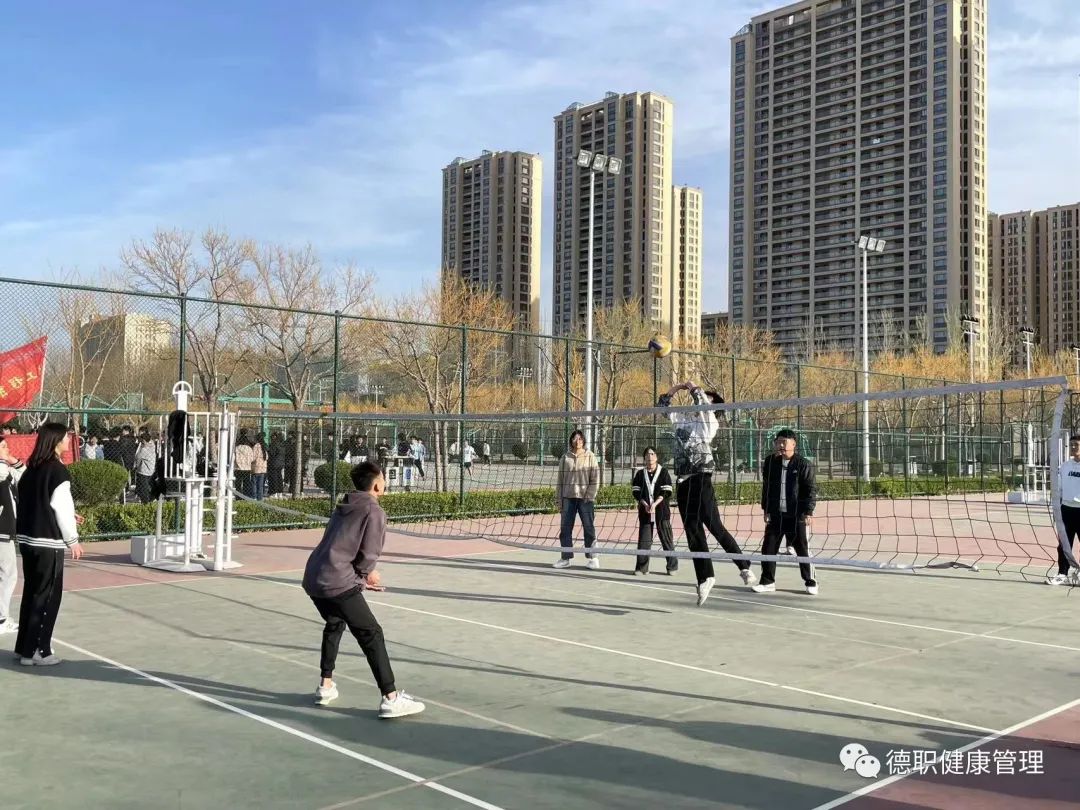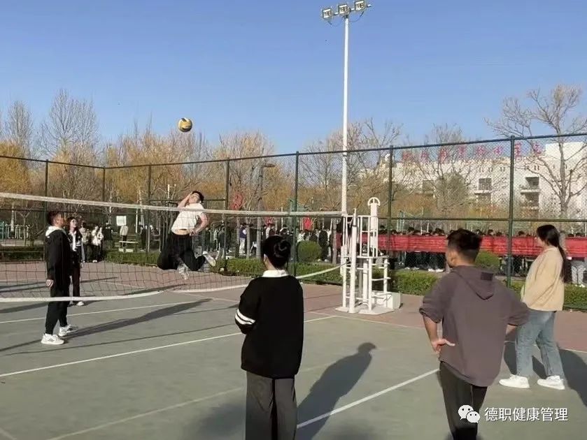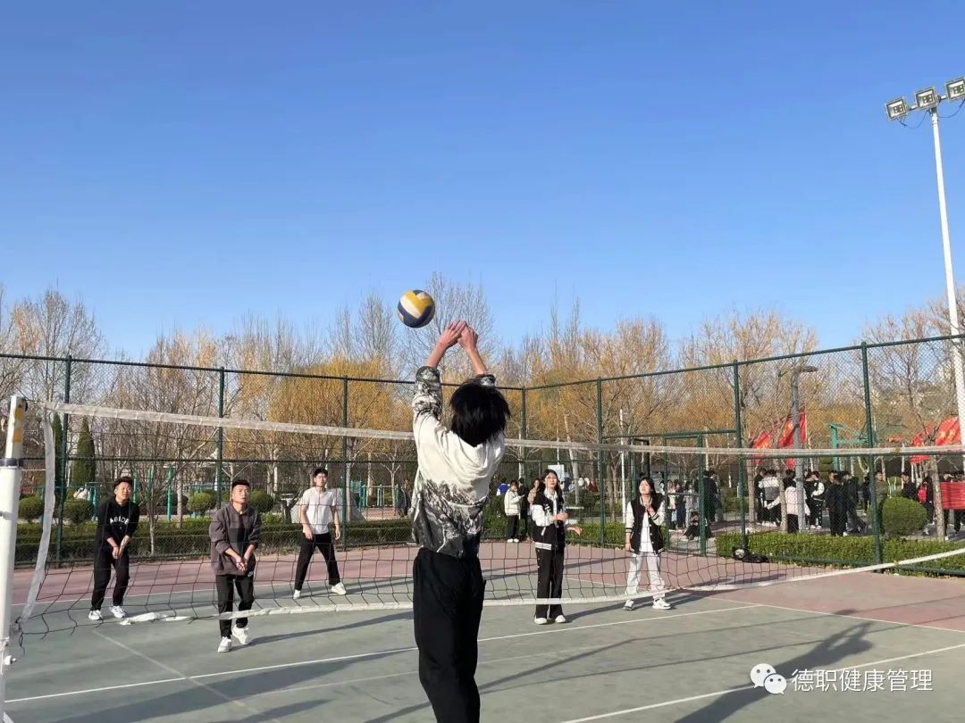 在排球场上同学们正努力的进行着训练,在排球击打的声音中他们找到了自己的宣泄方式和热爱的运动,在排球运动中不仅可以宣泄自己压力还可以增强团队精神、改善体态、调节情绪。