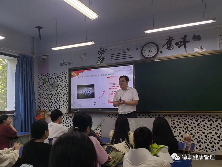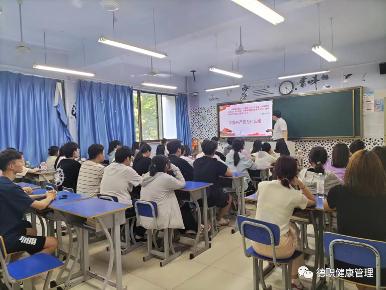 朱主任以党的二十大报告为切入点,结合生动的实例从科学的理论指导、坚定的理想信念、强大的组织优势、坚实的群众基础、彻底的自我革命五个方面深入浅出的为同学们讲述了中国共产党整整一个世纪不平凡的奋斗历程,从50 多名党员到近9600万名党员,从一叶扁舟到巍巍巨轮,走过百年风雨,却长盛不衰、愈发枝繁叶茂的伟大历程。课上,通过探讨交流,同学们明白了为什么只有中国共产党才能带领广大人民群众实现中华民族的伟大复兴,进一步增强了“四个意识”,坚定了“四个自信”,做到“两个维护”。
