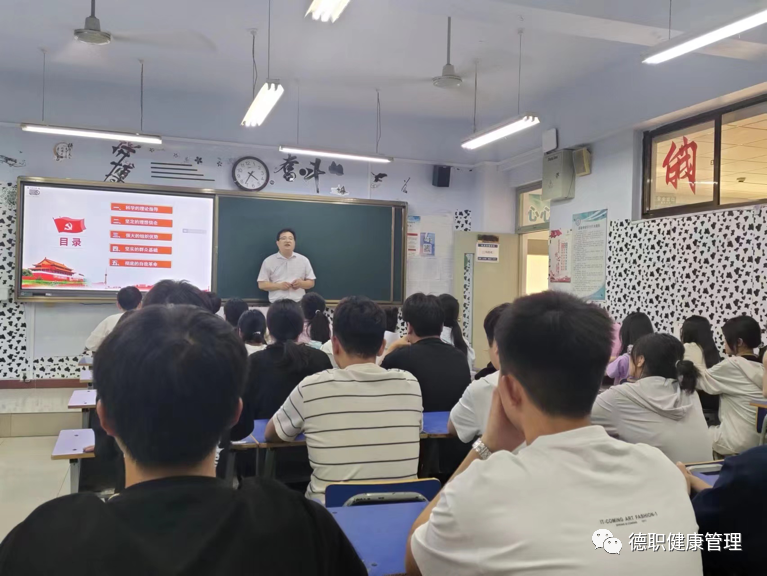 最后,朱主任向同学们提出三点希望:一是要坚定理想信念。理想信念是前进的目标和动力,希望同学们要树立正确的人生观、世界观和价值观,立志为党的事业贡献青春力量。二是明确责任担当。新时代新征程,同学们是实现中国梦的中坚力量,作为当代大学生要明方向、立长志、守初心、勇担当。三是要学知识强本领。希望同学结合所学专业多读书、读好书,精打细磨做学问、踏实肯干强技能,早日成为“一专多能”的复合型人才。