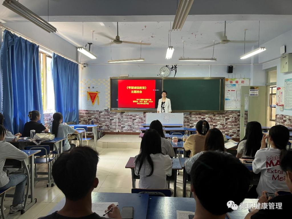 最后,齐宁老师强调考风考纪的重要性,要求诚信考试,并指出,高等院校的考风建设是学风建设、校风建设的一个重要方面,因此各班级要认真贯彻考试工作的相关规定,严抓考风考纪,以考风促学风。并且从监考人员工作守则、考场纪律、考生须知、考场违纪处罚等方面进行了具体阐述,要求各班级对此高度重视,告诫同学们应诚实做人、诚信考试,树立良好的考场形象。