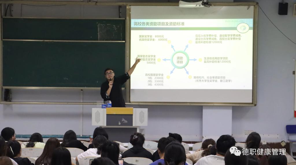 会上,张跃骜从资助对象、资助标准、资金发放等方面介绍了国家对学生资助体系,包括奖学金、助学金、助学贷款、勤工俭学、临时困难补助等资助工作全覆盖,鼓励学生积极求学,强调资助工作以人文关怀为核心,以实事求是为指导,以解决学生实际问题为目标,本着扶困更扶志的育人理念,旨在加强精准认定,精准资助。