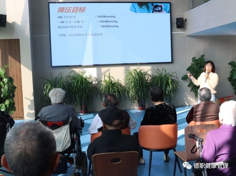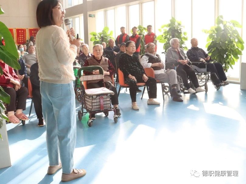 随后,健康科普服务队王建红老师讲授《脑卒中的预防》,王老师分别从脑卒中的概念、如何识别脑卒中、脑卒中的治疗、脑卒中的预防四个方面进行了详细讲解。重点讲了脑卒中的预防,首先控制血压、控制糖尿病、控制高血脂。再次改变生活方式,控制体重、限制饮酒、增强有氧运动,减少钠盐摄入量,要养成健康的生活方式,定期进行脑卒中危险因素筛查,做到早发现、早预防、早诊断、早治疗。结束前,王老师为老人们准备了一场生动有趣的手指操,旨在通过按摩手指、促进血液循环,达到强身健体的目的。老人们跟着王老师的示范,手指灵活地在空中舞动,脸上洋溢着快乐的笑容。