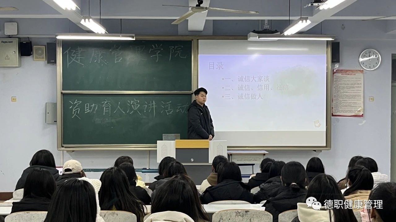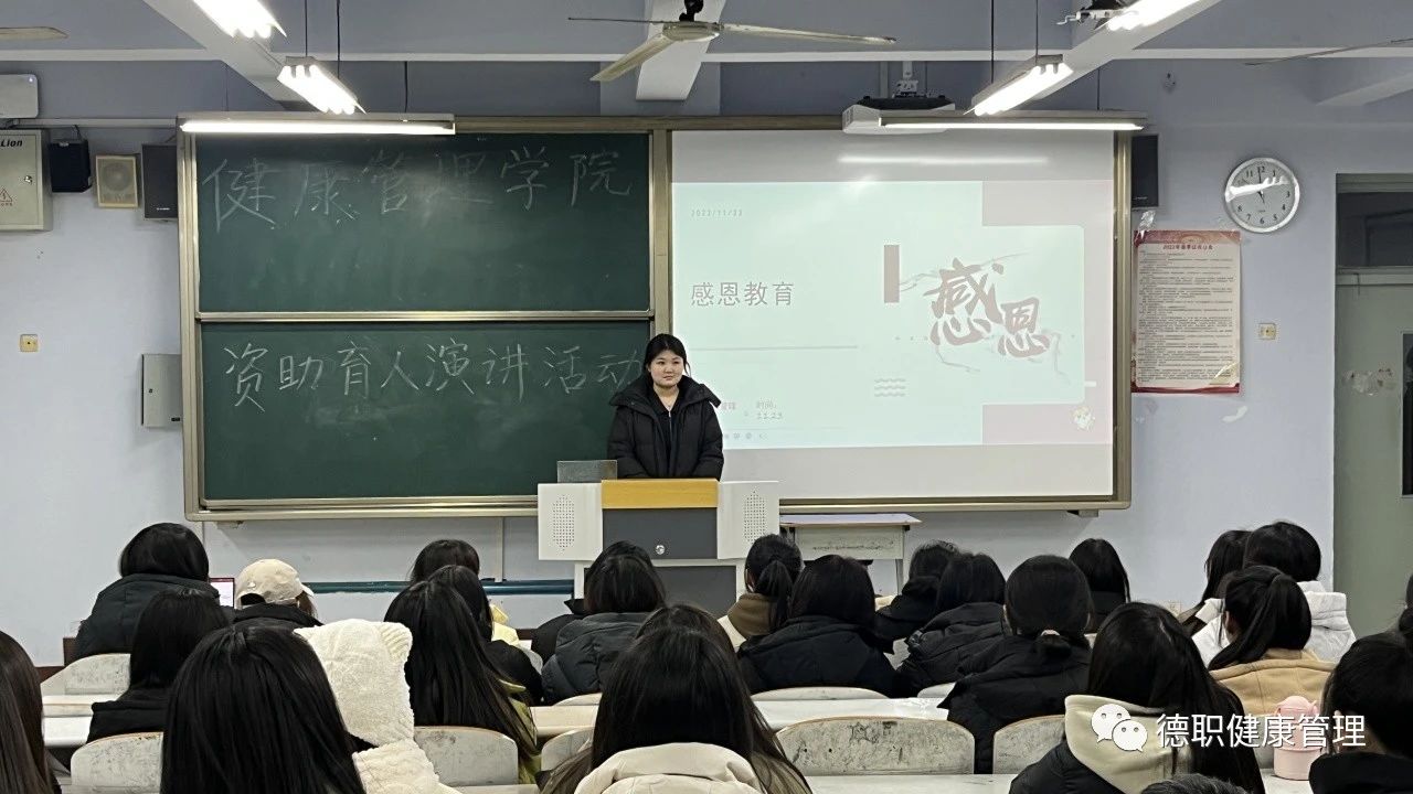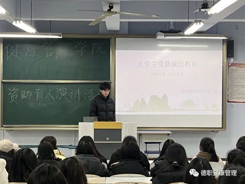 随后,由23级健康管理一、二班,23级康复治疗一、二班班级代表们讲述了国家学校的资助政策的意义。国家采用精准扶贫、教育扶贫、健康扶贫等政策对困难户进行帮扶,体现了国家对打赢脱贫攻坚战的决心。而学校的奖、助、贷、减、免、补六位一体助学体系为学生的学习生活提供了坚强的后盾,并呼吁大家要感恩那些向我们伸出援手的人们,感恩在苦难中坚持的自己,积极进取、励志成才。