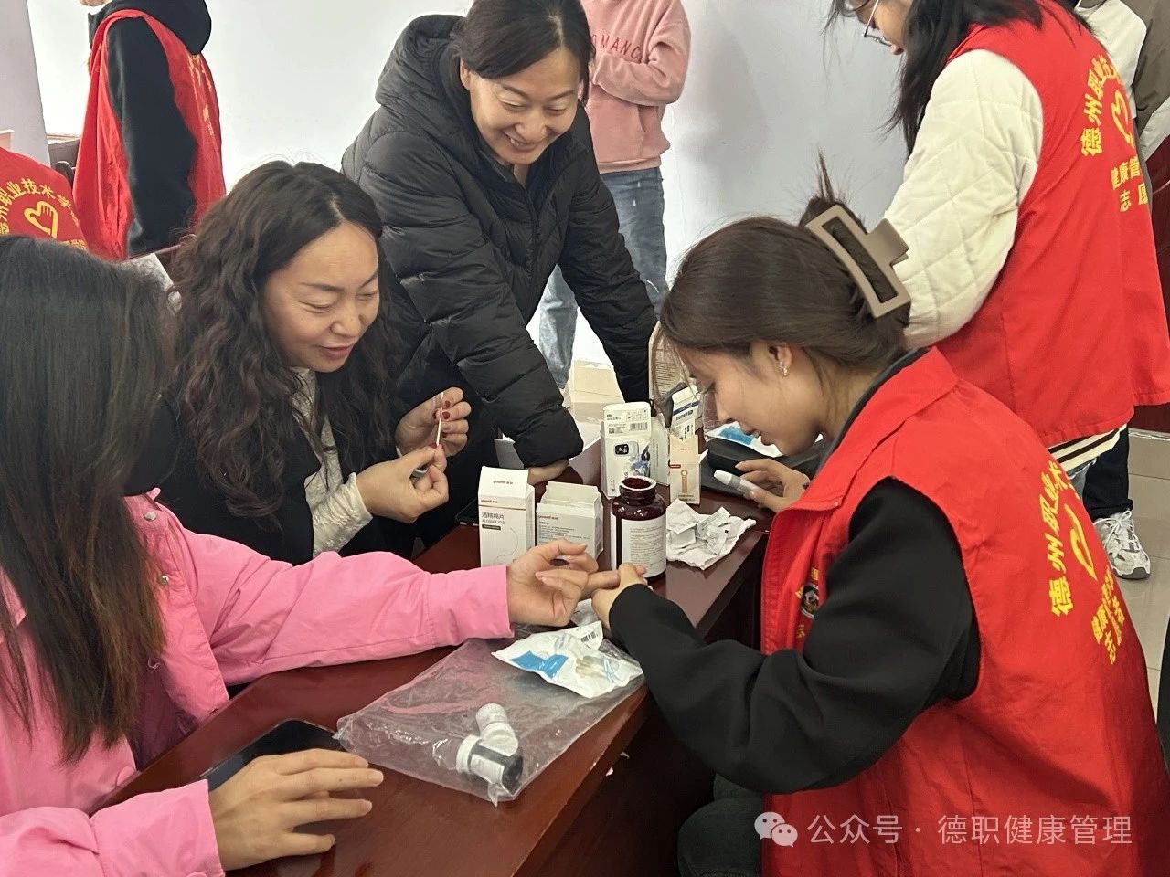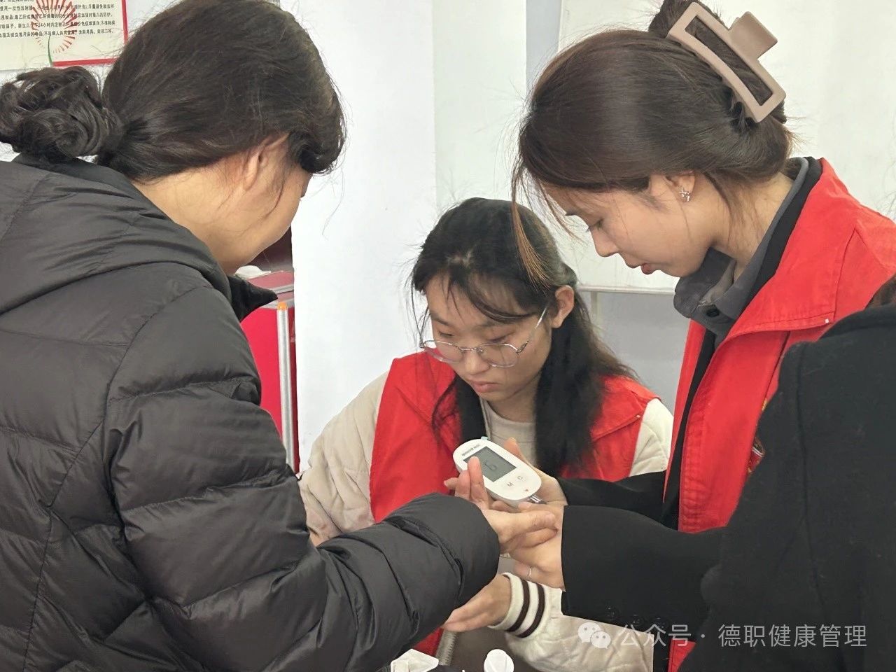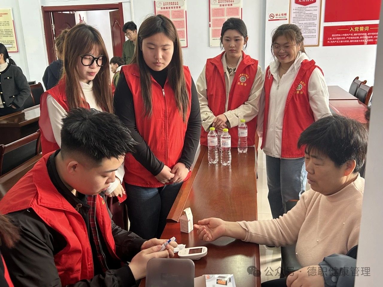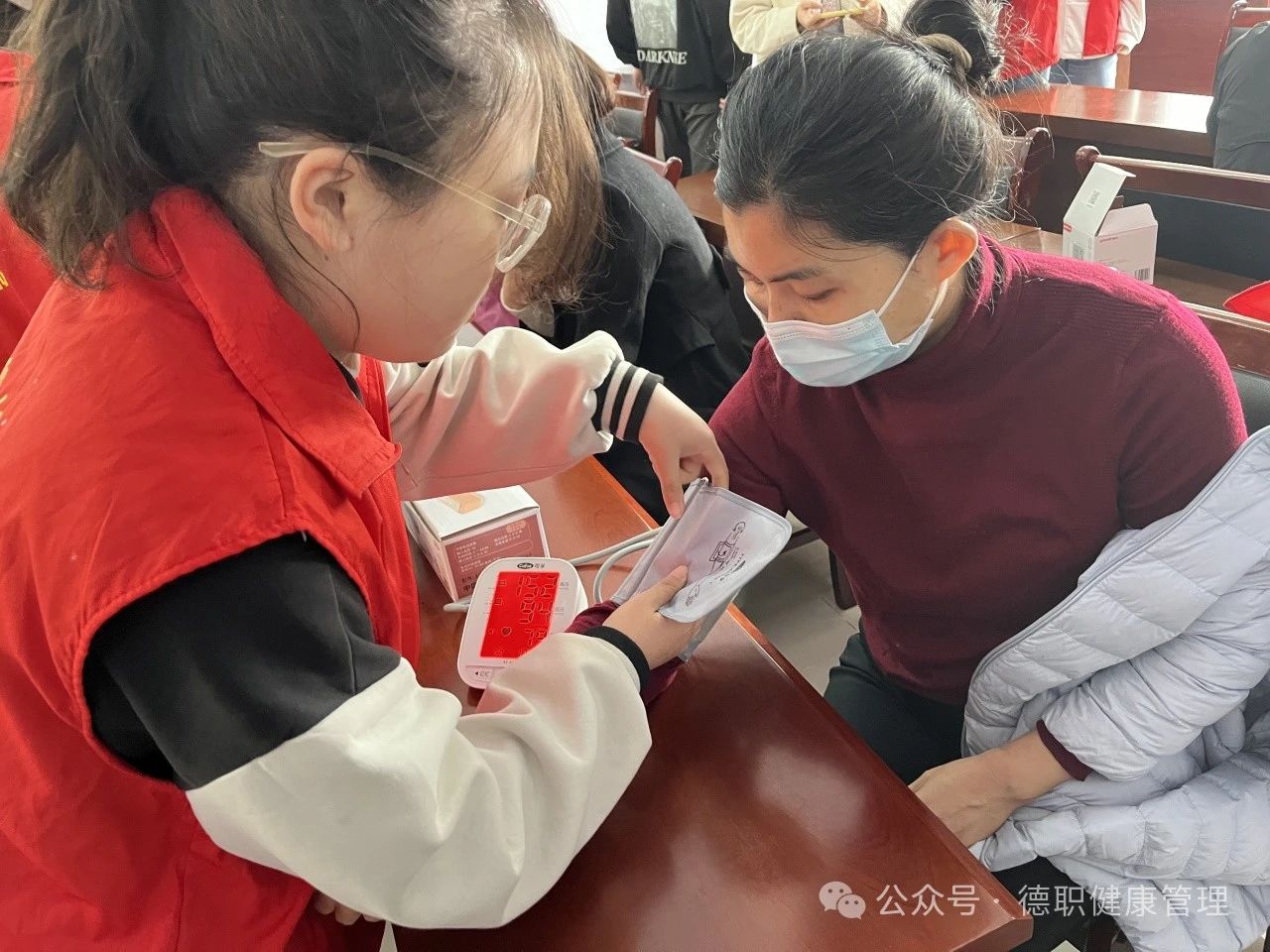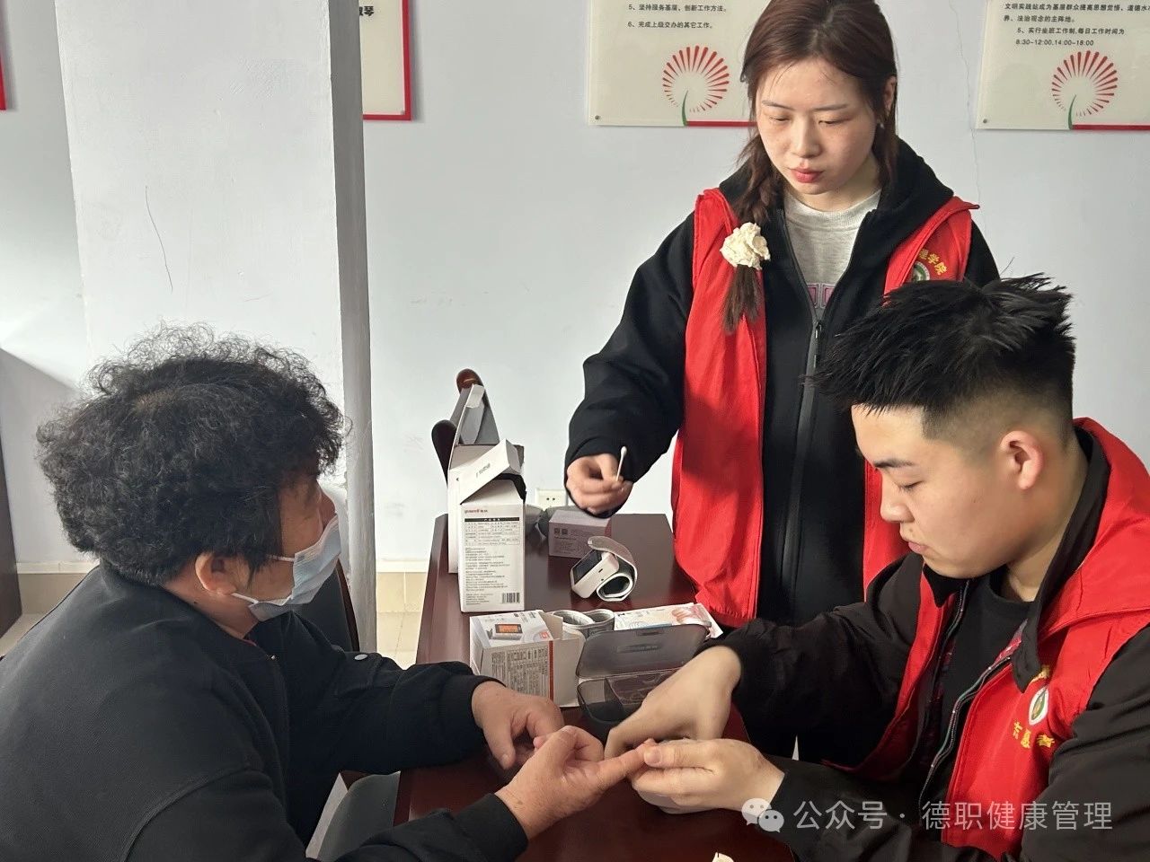 在义诊环节,志愿者们分组进行血压测量、健康知识普及等活动,为居民免费测量血压并普及健康知识,使居民们对高血压与低血压的症状、预防方法和如何减缓高血压发展有了更多的了解,同时志愿者们提升了自身临床技巧与应对能力。在实践活动中,志愿者们以饱满的热情,耐心地回答,专业的知识收获了居民的一致好评。