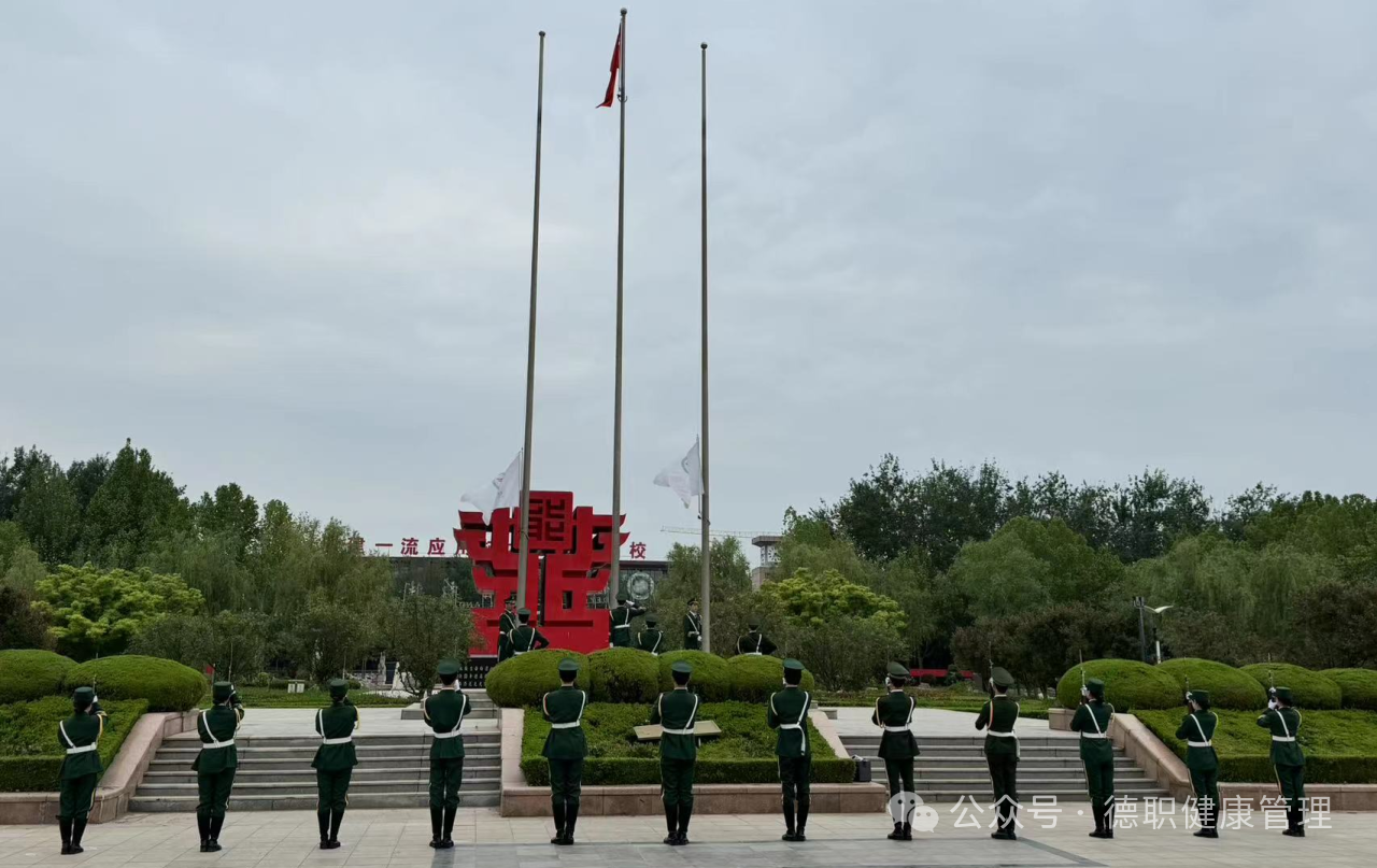 国旗护卫队昂首挺胸,迈着铿锵有力的步伐,护卫着鲜艳的五星红旗入场。伴随着国歌的响起,大家集体行注目礼,齐唱国歌,庄严肃穆。冉冉升起的五星红旗激发了同学们不断向上的斗志,点燃了同学们强烈的爱国热情。