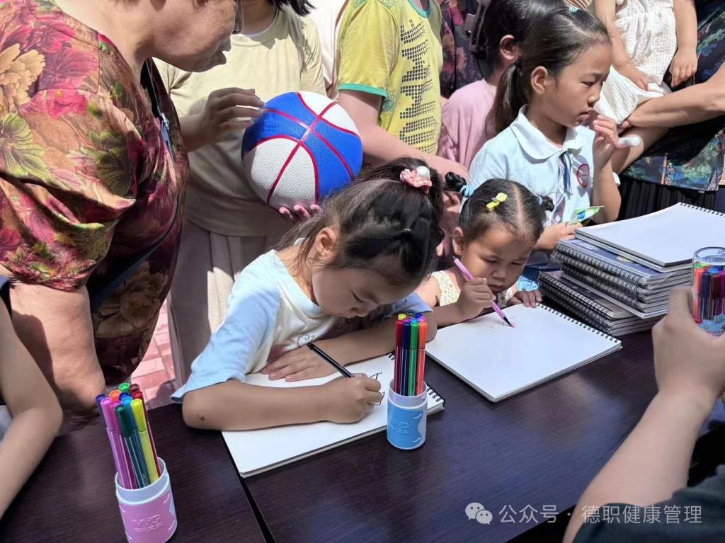 2024年7月6号,米乐mile体育官网金晖健康社会实践队的志愿者来到德州市十二里庄社区开展“守护童年˙牵手共成长”暑假关爱服务儿童活动公益项目,党总支书记范轶、学生科科长路遥、副科长齐宁、思政课教师张婷婷、马皓和学生志愿者们一起参与了本次活动。