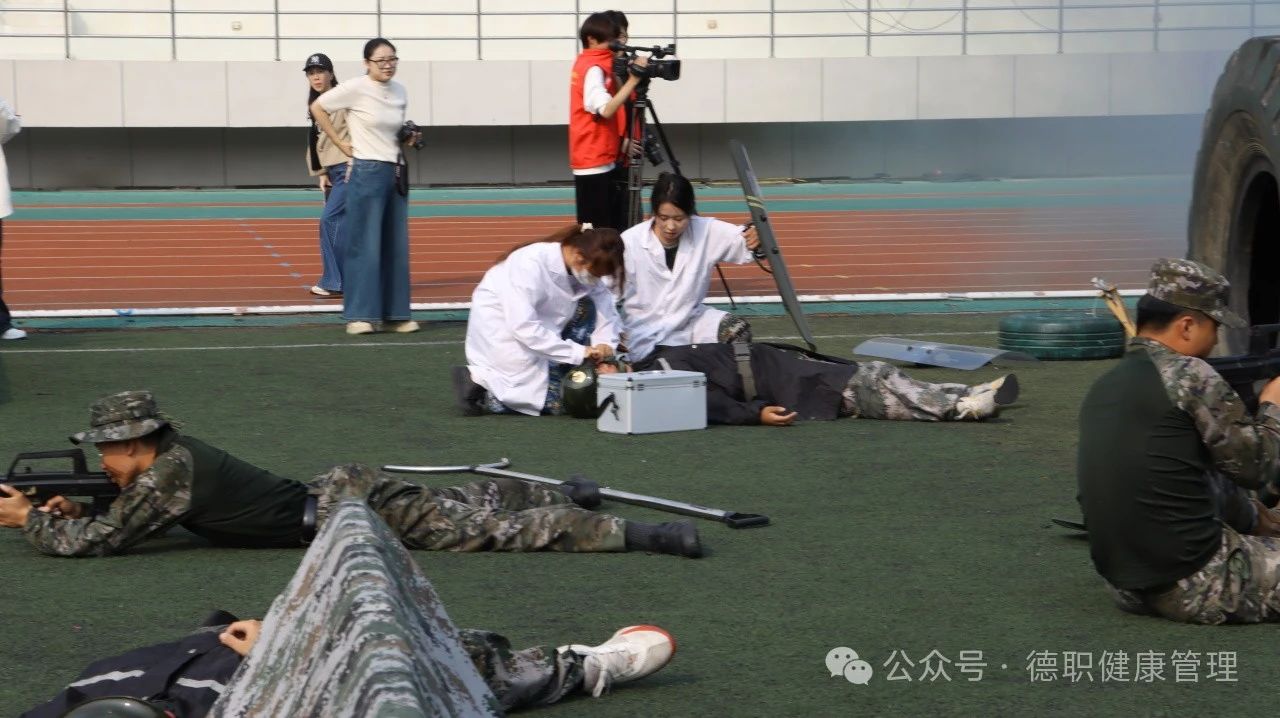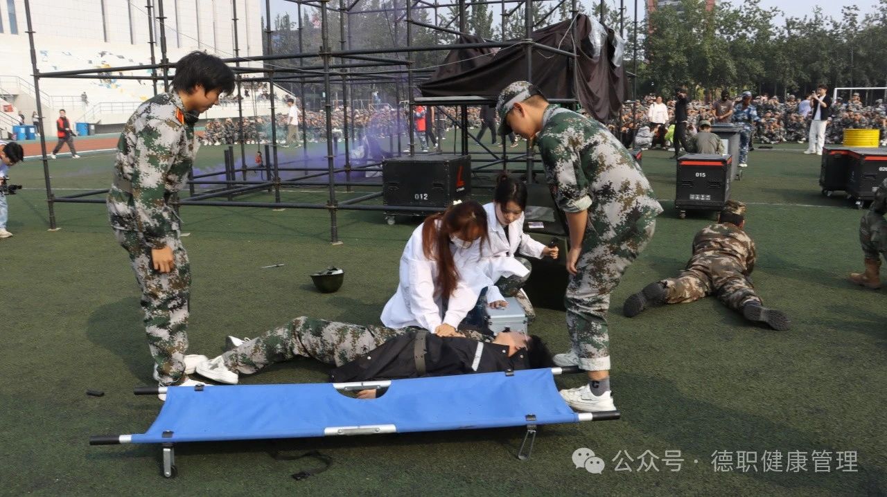 会场上,方阵整齐划一,步伐铿锵有力,米乐mile体育官网学子以挺拔的军姿、响亮的口号,展现了新时代青年的蓬勃朝气与昂扬斗志。每一次转身,都是对纪律的遵守;每一步前进,都是对梦想的追求;模拟实地战场医疗救护中,军训学生全副武装,匍匐前进、战场救护,让师生们热血沸腾。