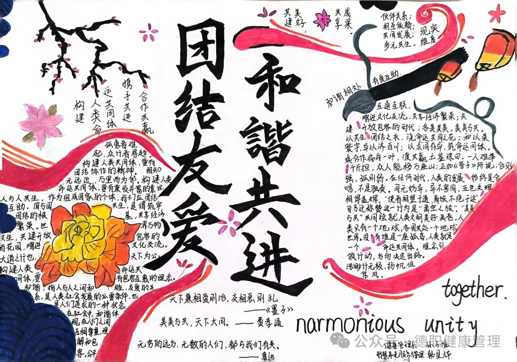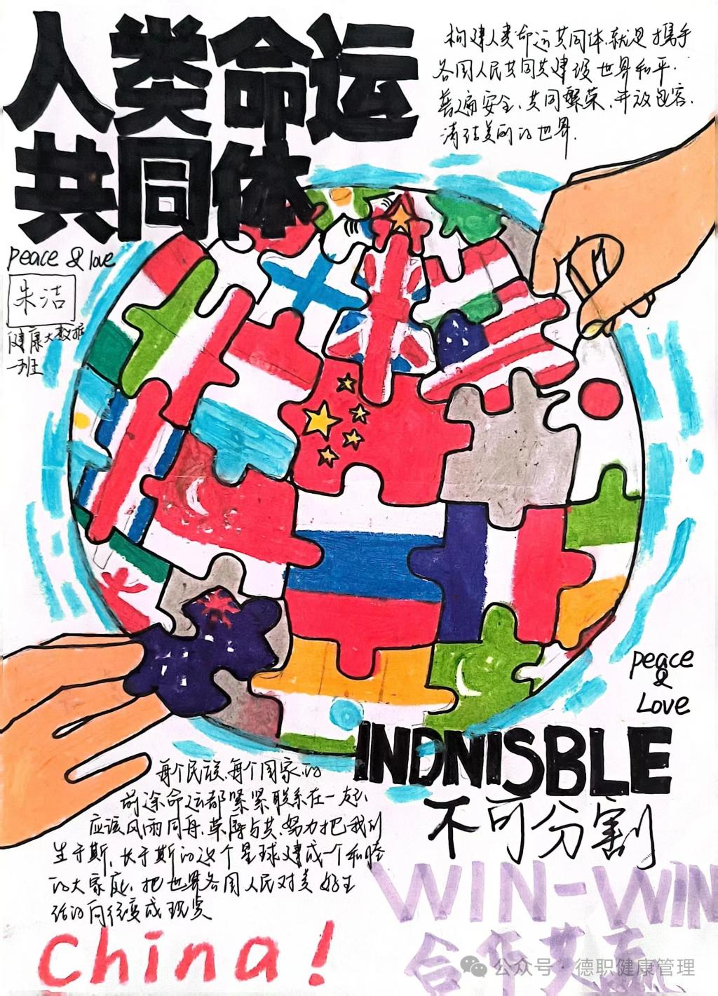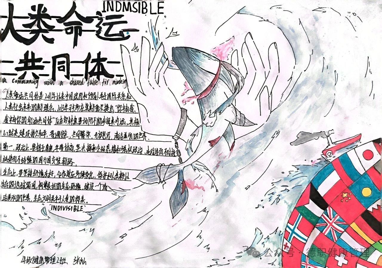 24级各班围绕“构建人类命运共同体”这个主题创作了手抄报。同学们热情高涨,以青春为笔,浓情为墨,将自己深厚的爱国情、报国志融入创作,色彩间的交融蕴含着“志同道合携手行,命运与共创未来”的拳拳爱国心。