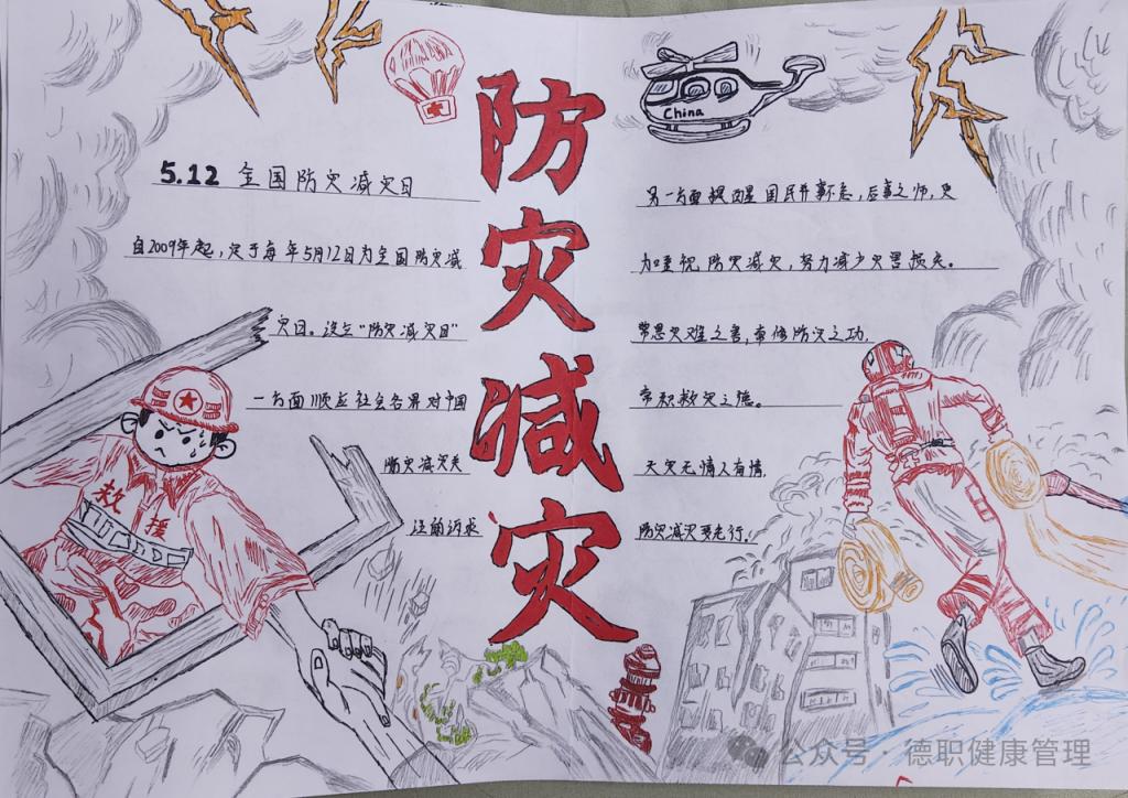 张如欣同学分享了与地震相关的小常识和应急避险方法,对“防灾减灾”中的疏散逃生和自救注意事项进行了重点讲解,旨在增强同学们的安全防范意识和应急处置能力。此外,24级各班同学围绕“防灾减灾”主题创作了手抄报,通过这种形式进一步加深了对防灾减灾重要性的认识。