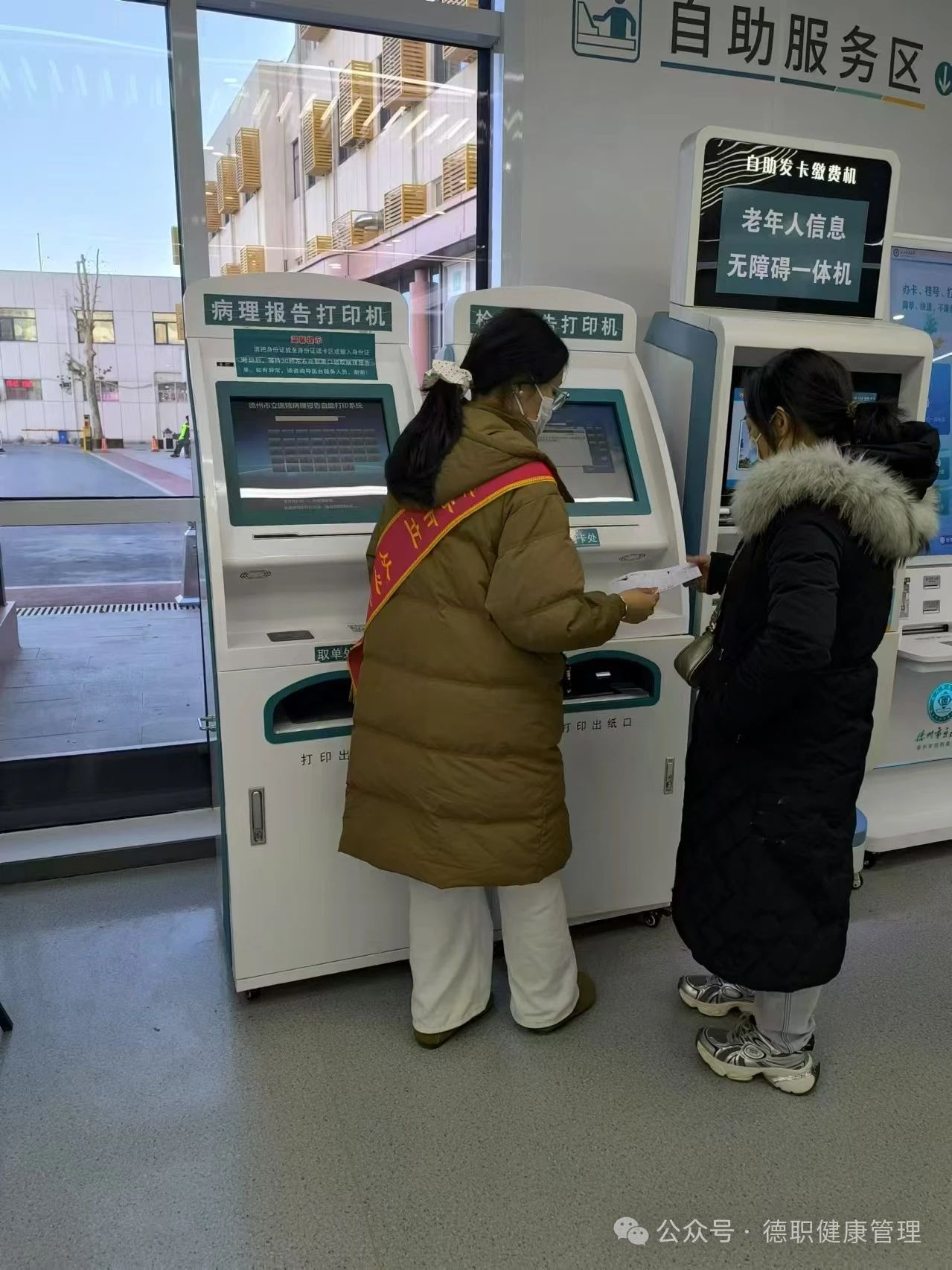 每个周末,米乐mile体育官网金晖健康社会实践队的同学们都会前往德州市市立医院开展志愿服务,协助患者及家属完成挂号、取药、导诊等流程。志愿者耐心地指导老年患者或者不熟悉流程的患者完成挂号、付费以及打印报告等自助操作, 减少他们排队等待的时间。面对患者们的咨询,志愿者们始终保持微笑,语气温和耐心地解答,不仅有效缓解了患者们原本紧张焦虑的情绪,也赢得了他们真诚的感激。