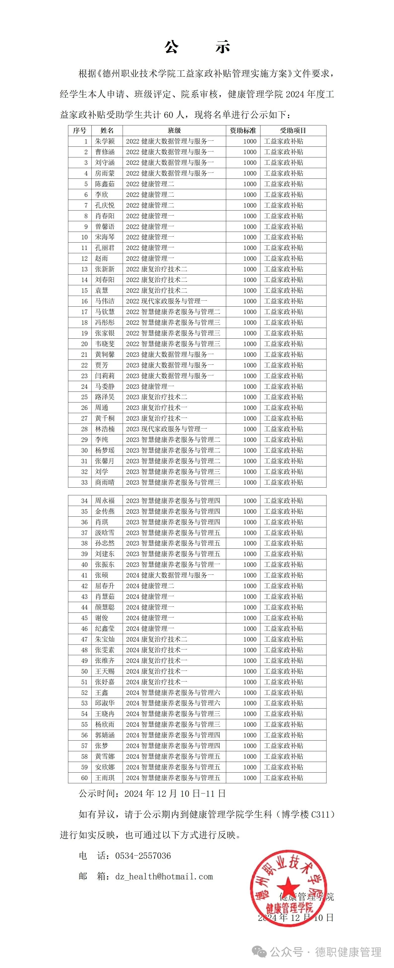 米乐mile体育官网2024年度工益家政补贴公示