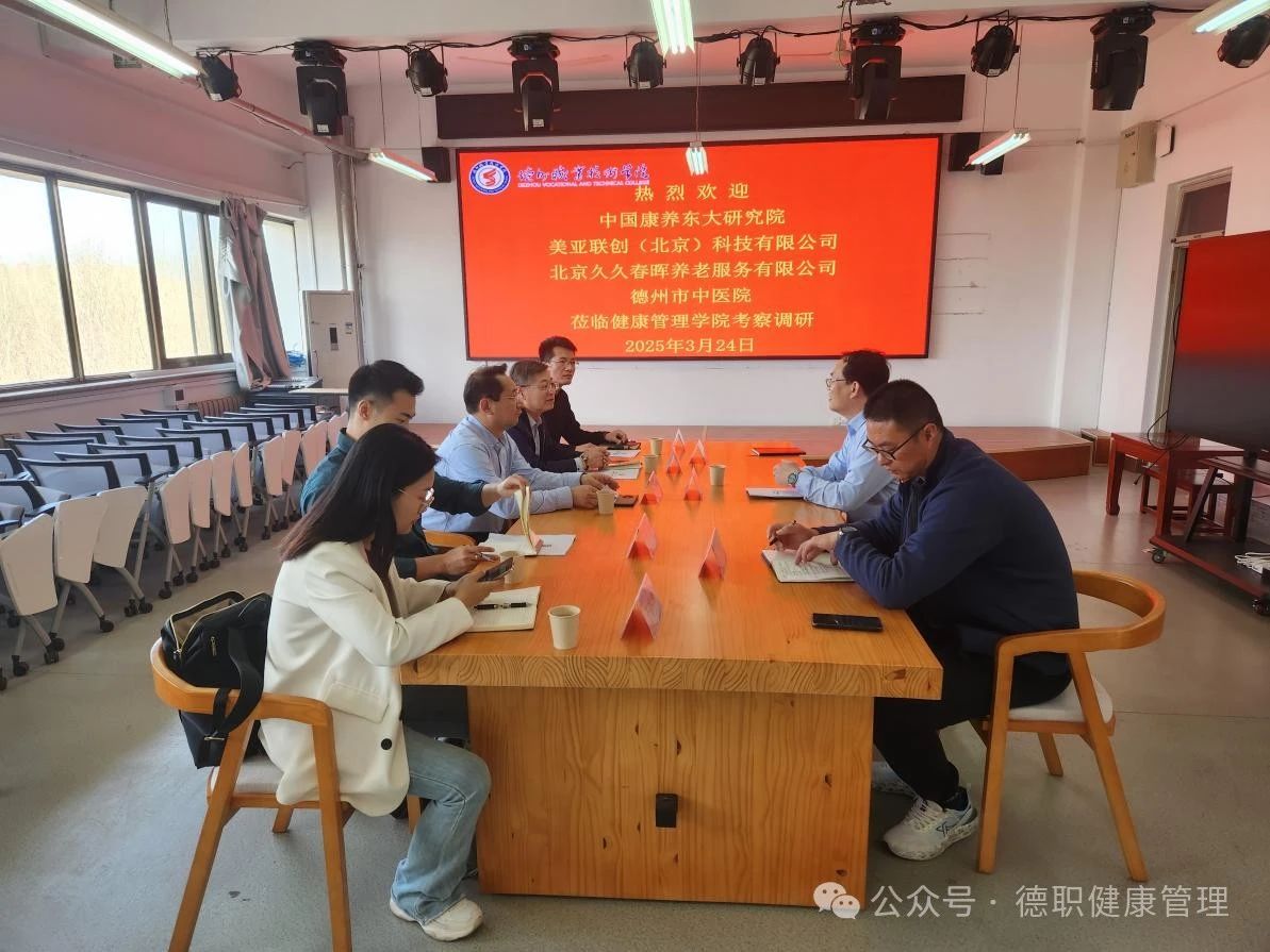 3月24日,中国康养东大研究院院长张晓飞、中国康养东大研究院北京办事处负责人马源、美亚联创(北京)科技有限公司大区经理于晓腾、苏州久久春晖养老服务有限公司经理李培锋、德州市中医院外联部主任段焕春等一行到米乐mile体育官网考察交流。米乐mile体育官网院长王英博,综合科科长参加会议。