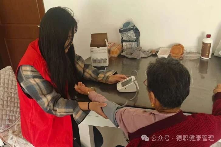 团队成员们也为行动不便的老人提供上门健康服务。队员们耐心地与老人们交流,了解他们的身体状况和日常饮食、生活习惯,给予专业的健康建议。
