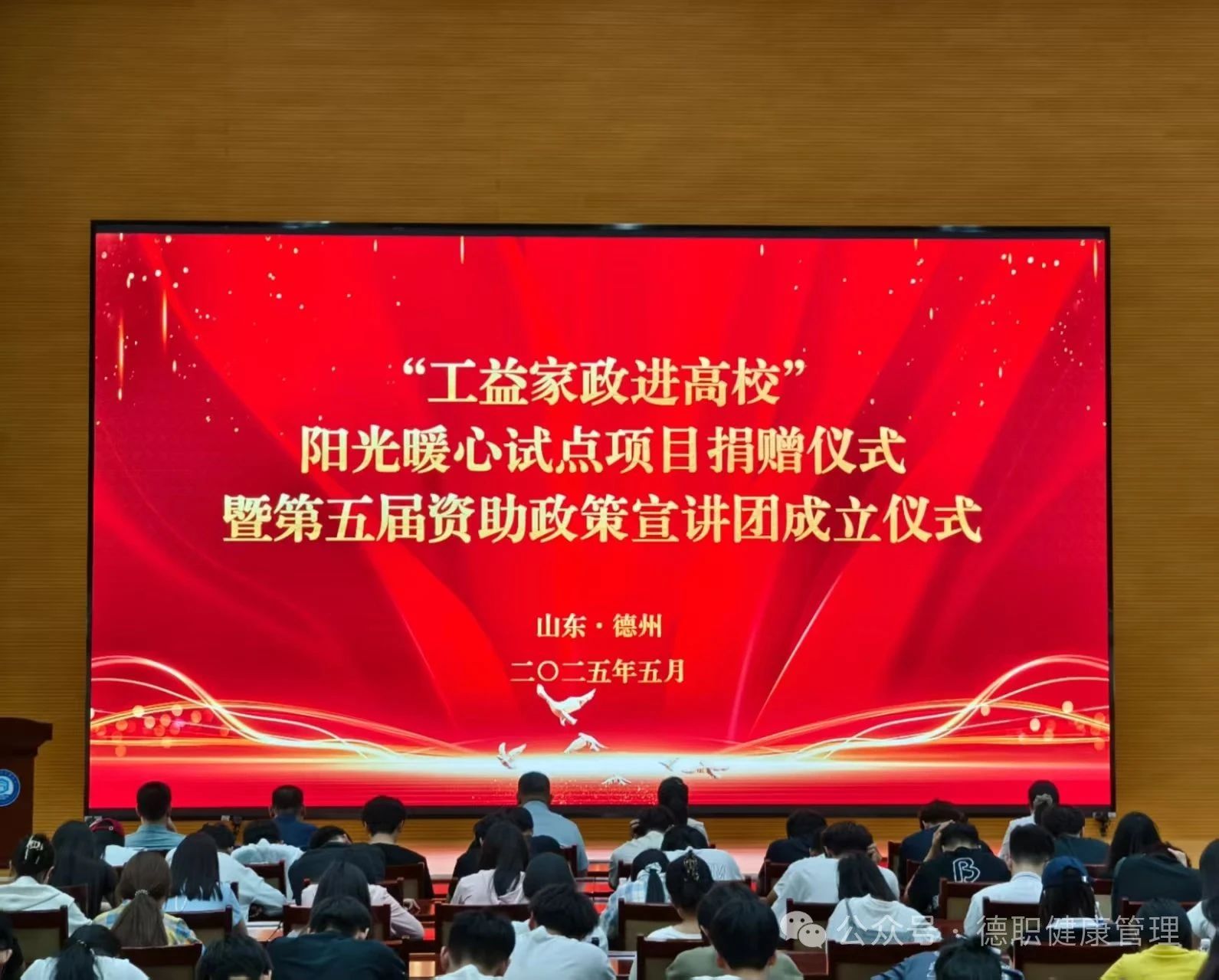 为推进精准资助育人工作,助力学生成长成才,5月27日下午,米乐mile体育官网“工益家政进高校”阳光暖心试点项目捐赠仪式暨第五届资助政策宣讲团成立仪式在德州市实训中心多功能厅举行。德州市总工会党组成员、副主席王咏梅,校党委委员、副院长刘宏杰,校党委委员、办公室主任、宣传部部长朱弘,校党委委员、工会主席刘伟及相关领导出席,全体受助学生及宣讲团成员参加捐赠仪式。