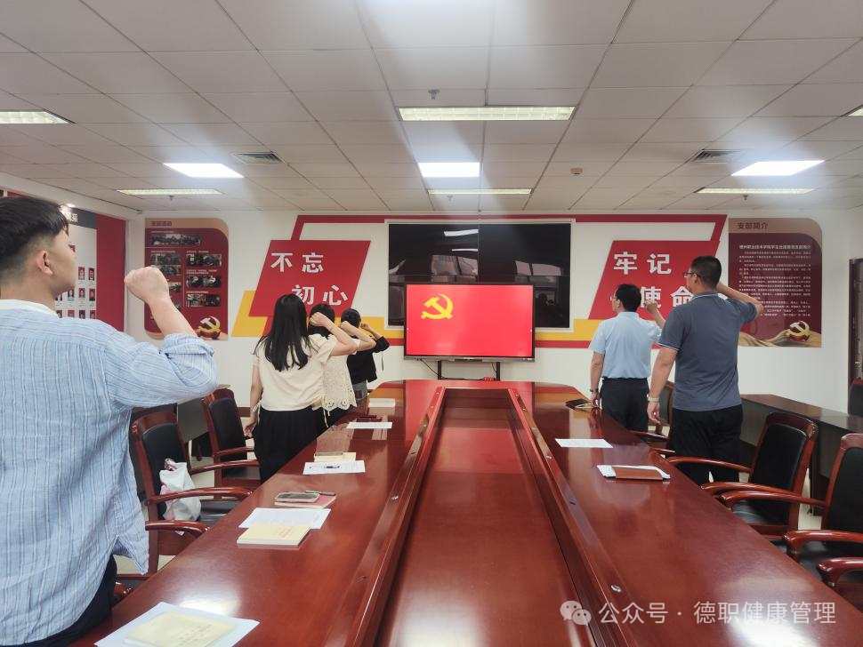 首先组织党员签到,奏唱国歌,重温入党誓词。