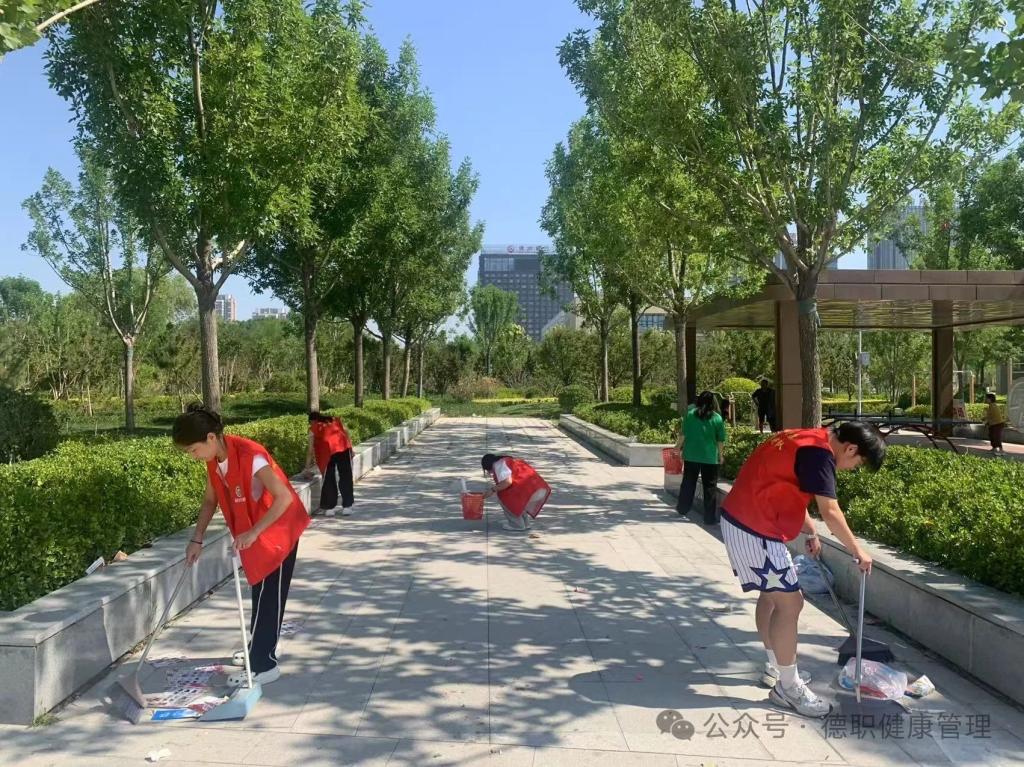 活动现场,志愿者们身着统一红马甲,成为公园中一抹亮眼的青春色。他们手持清扫工具,对公园路面、绿化带等区域进行细致清理,不放过烟头、纸屑、塑料瓶等任何垃圾,用实际行动为公园"梳妆"。