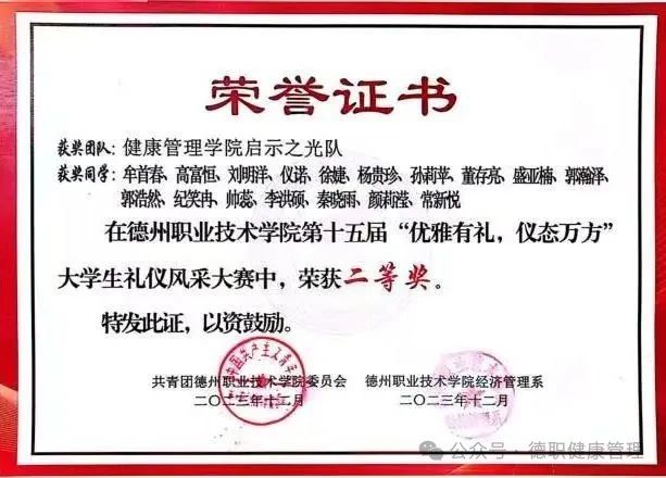 6.在米乐mile体育官网第十五届“优雅有礼,仪态万方”大学生礼仪风采大赛中,荣获二等奖;