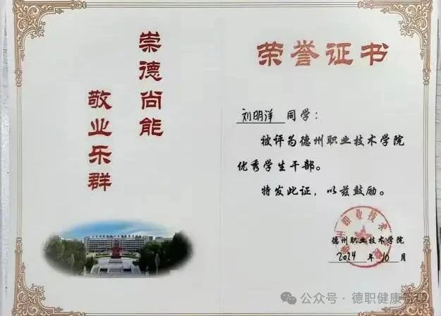 1.2024年10月,获评米乐mile体育官网优秀学生干部;
