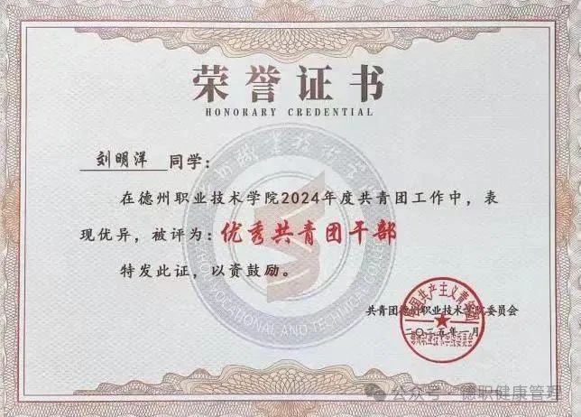 3.2024年12月,获评米乐mile体育官网优秀共青团干部;