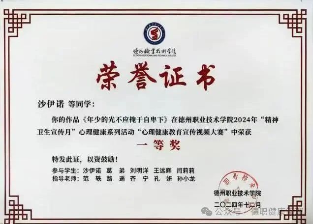 4.在 2024 年“精神卫生宣传月”活动中,荣获一等奖;