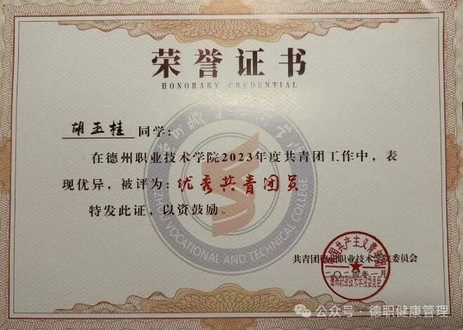 2025年1月,被共青团米乐mile体育官网委员会评选为“优秀共青团干部”;