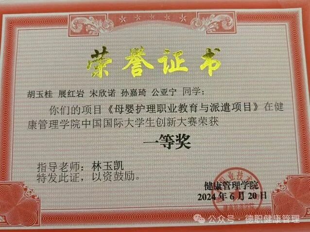 2024年6月,荣获中国国际大学生创新创业大赛系一等奖;