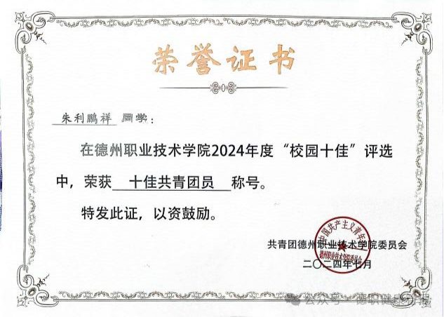 2024年7月在米乐mile体育官网2024年度“校园十佳”评选中,荣获“十佳共青团员”;