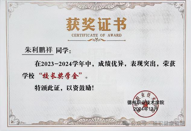 2024年12月米乐mile体育官网在2023-2024学年中荣获“校长奖学金”。
