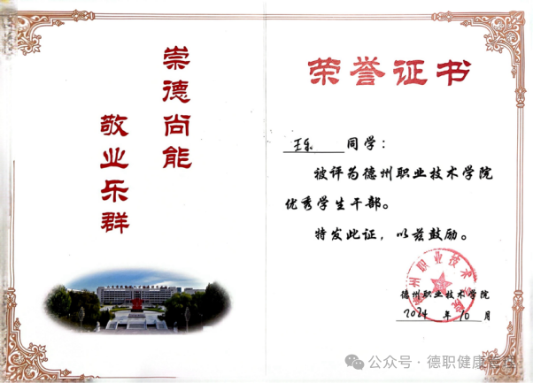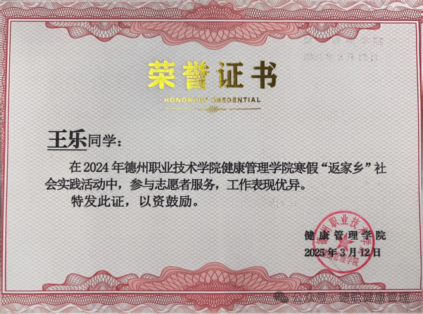 3. 2024年3月,被德州市消防救援支队评为“优秀志愿者”
