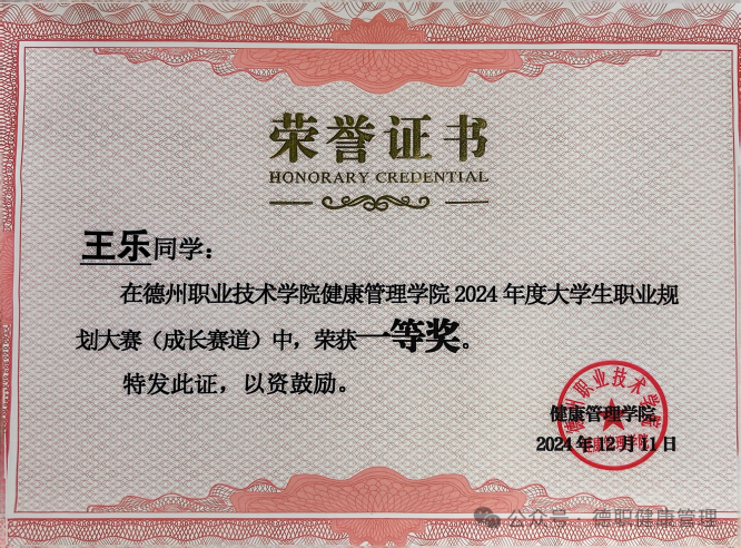 13. 2024年12月,在米乐mile体育官网2024年度大学生职业规划大赛(成长赛道)中,荣获一等奖