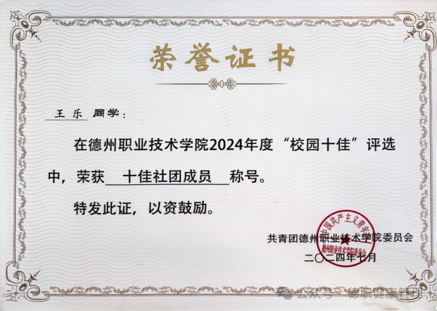11. 2024年7月,在米乐mile体育官网2024年度“校园十佳”评选中,荣获“十佳社团成员”称号