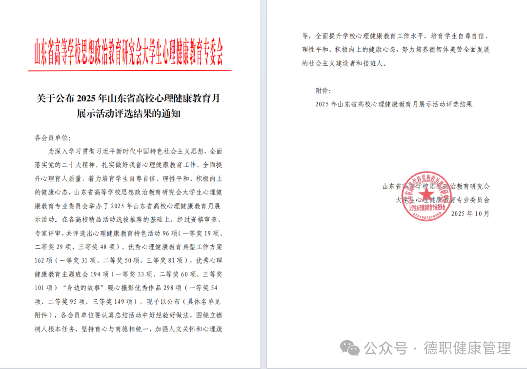 近日,2025年山东省高校心理健康教育月系列活动评选结果正式揭晓,米乐mile体育官网师生凭借扎实的专业能力与饱满的参与热情崭露头角,表现突出,成功斩获省级三等奖,荣膺佳绩!