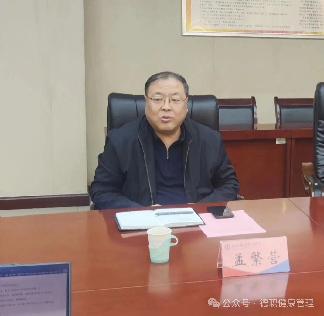 会上,孟繁营对鄢董事长一行表示欢迎,并简要介绍学校办学特色、发展布局等情况。他表示,近年来,学校聚焦高水平专业群建设,积极探索校企协同育人新模式,取得了一定成效。希望双方以此次调研为契机,校企深度合作办学,共建康养人才基地,共同为区域康养产业高质量发展赋能。