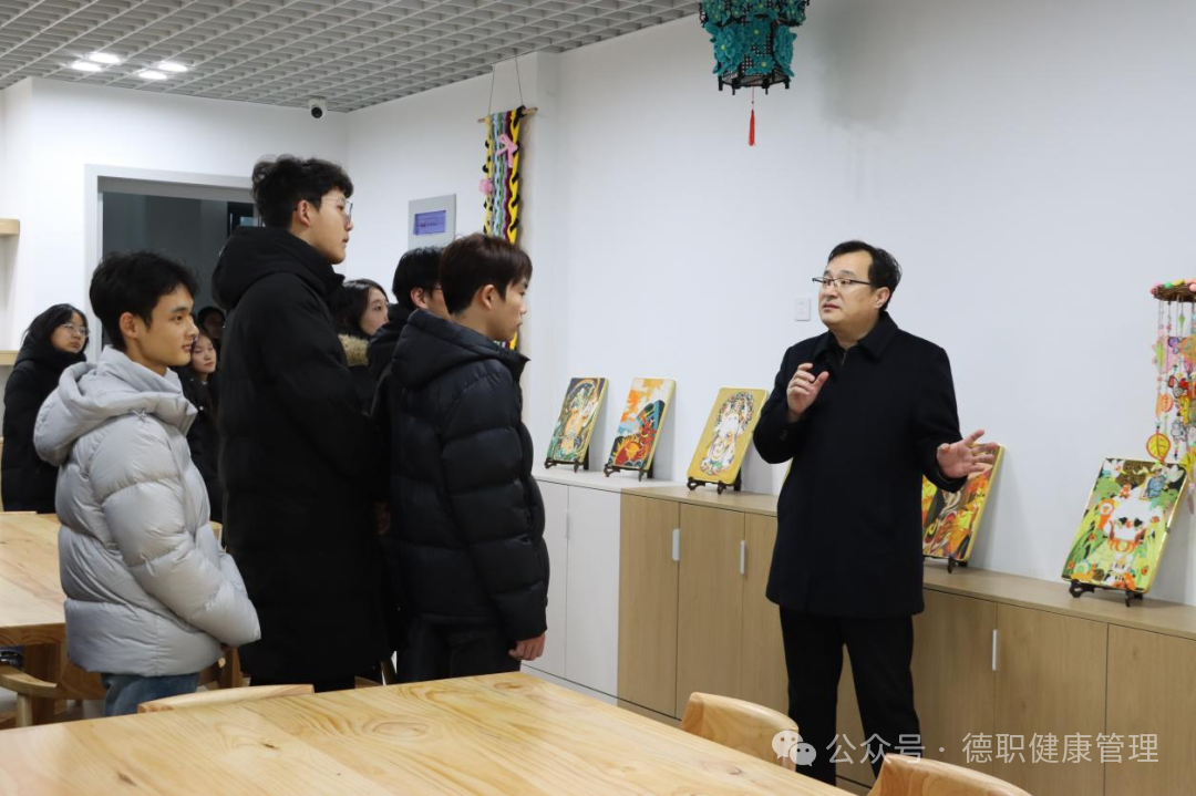 朱弘首先带领学生们走进校史馆,从学校建校讲起,结合历史资料与实物展品,生动讲述了学校在不同历史时期为党育人、为国育才的奋斗历程,引导学生深刻理解学校的初心使命。随后,师生一行移步至启智楼,朱主任首先宏观讲述了启智楼的节能外观建设,随后参观了无人机实训室、非遗活动室等,近距离感受到科技和非遗项目的独特魅力。朱弘强调,青年学生要主动担当中华优秀传统文化的传承者与弘扬者,在实践体验中增强文化自信。