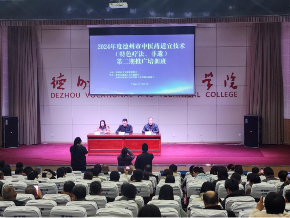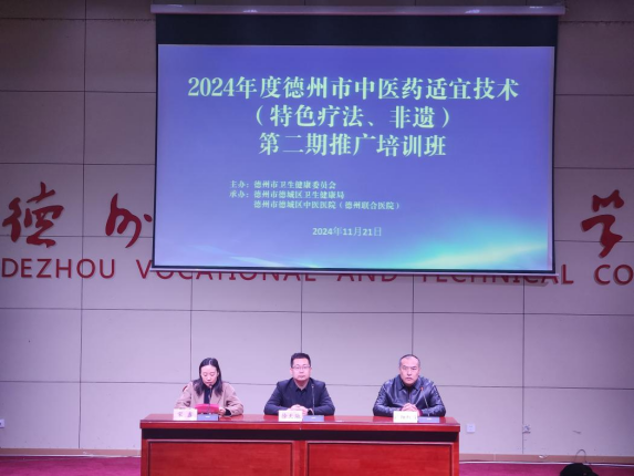 2024 年 11 月 21 日上午,2024 年度德州市中医药适宜技术(特色疗法、非遗)推广培训班在米乐mile体育官网开班。德州市卫生健康委三级主任科员徐天驰、 德城区卫生健康局党组成员、区中医药事业发展中心副主任宋鑫出席开班仪式,德州市德城区中医医院(德州联合医院)党委副书记欧阳红日主持开班仪式。