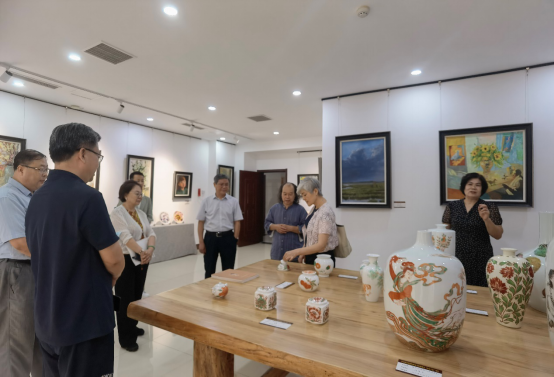 随后,参观了学校沙盘和宋磁德州窑红绿彩文化研究院,段总一行对红绿彩展品及教师画作赞不绝口。